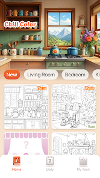 Chill Color - Paint by Number is een gratis Android-app die gebruikers uitnodigt in een serene, interieur-geïnspireerde kleurervaring. Deze applicatie biedt een verscheidenheid aan prachtig ontworpen kamers, waaronder keukens, woonkamers en slaapkamers, die allemaal zijn gemaakt om een gevoel van warmte en rust te brengen. Er zijn geen strikte regels of tijdslimieten, waardoor gebruikers op hun eigen tempo kunnen kleuren en hun creativiteit de vrije loop kunnen laten. De intuïtieve interface en eenvoudig te volgen kleurcodes maken het toegankelijk voor iedereen, ongeacht hun ervaring met kleuren.